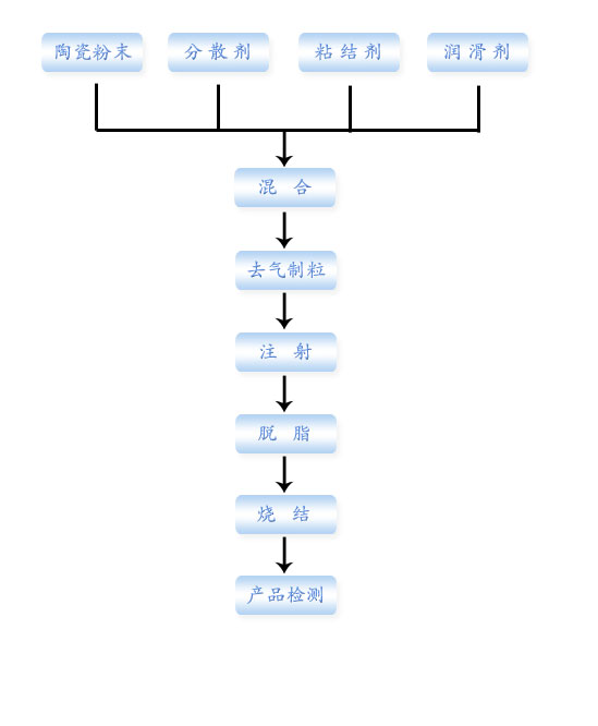 射出工程フローチャート,セラミック粉末射出工程,CIM加工,セラミック粉末射出,セラミック粉末射出成形,CIM粉末射出,酸化ジルコニウム粉末射出,酸化ジルコニウムセラミック粉末射出,アルミナ粉末射出,アルミナセラミック粉末射出,チタンセラミック粉末射出